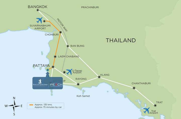 芭提雅位于曼谷南边147公里处,离曼谷机场约120公里。芭提雅南部30公里就是泰国最大的工业区罗勇府主要产业有汽车、化工、钢铁、炼油、天然气、电力等。