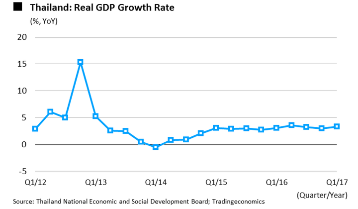2016年统计,泰国人口6,886万,国土面积513,120平方公里,总GDP 4,068亿美元,人均GDP 5,908美元。