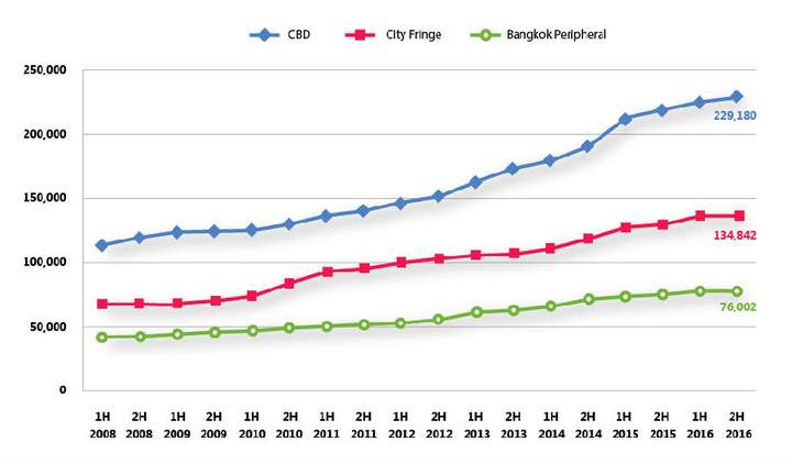 图:曼谷公寓平均售价2008-2016第一季度/Knight Frank Thailand