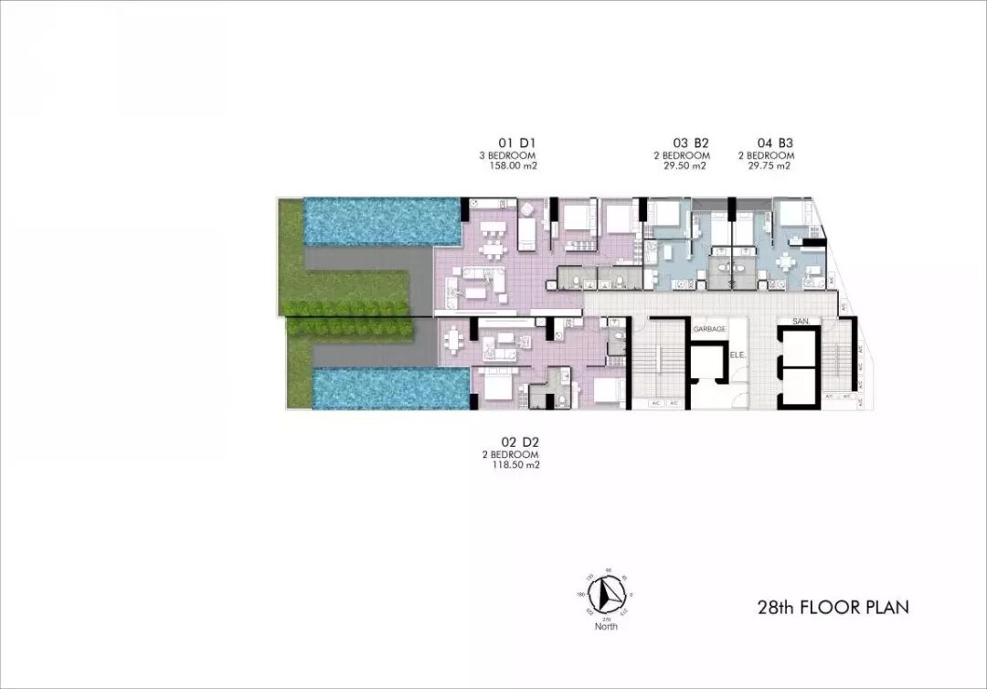28层空中别墅两&三居室 123.5&152平米(带花园泳池&无敌海景)