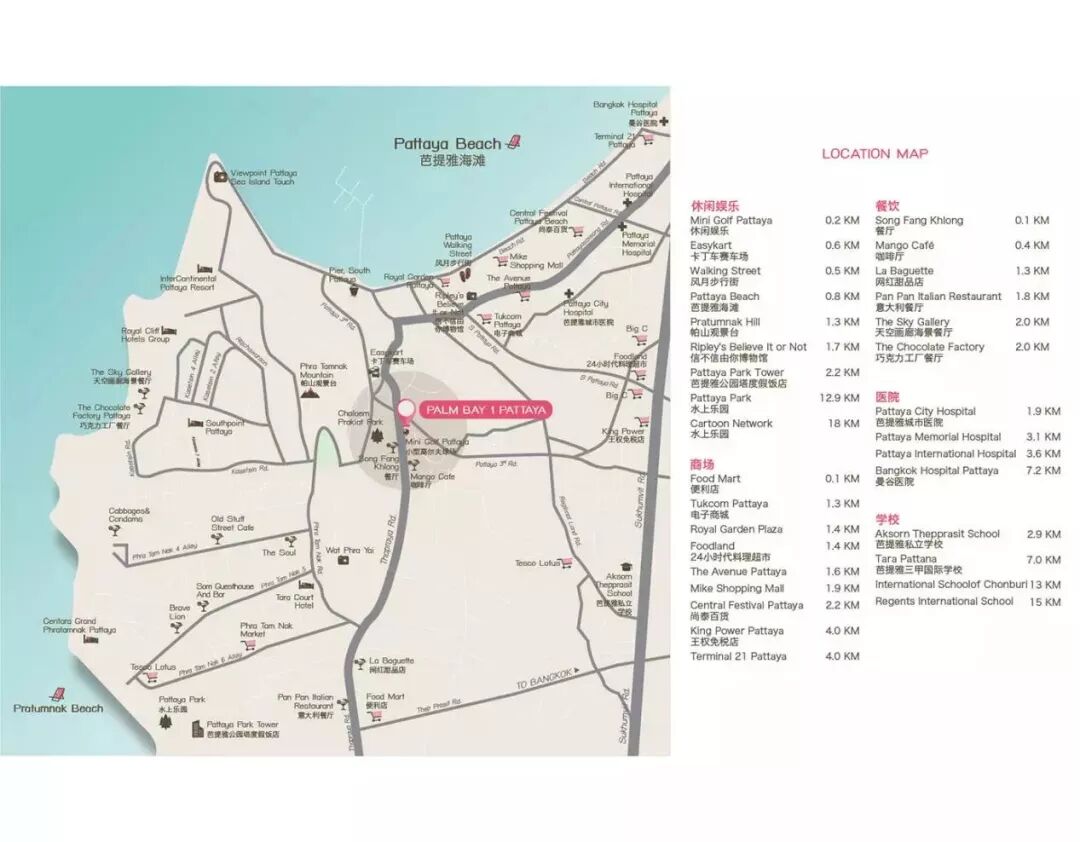 项目地址:芭提雅2路和Thappraya 路交界处;500米到达芭提雅步行街及核心商圈