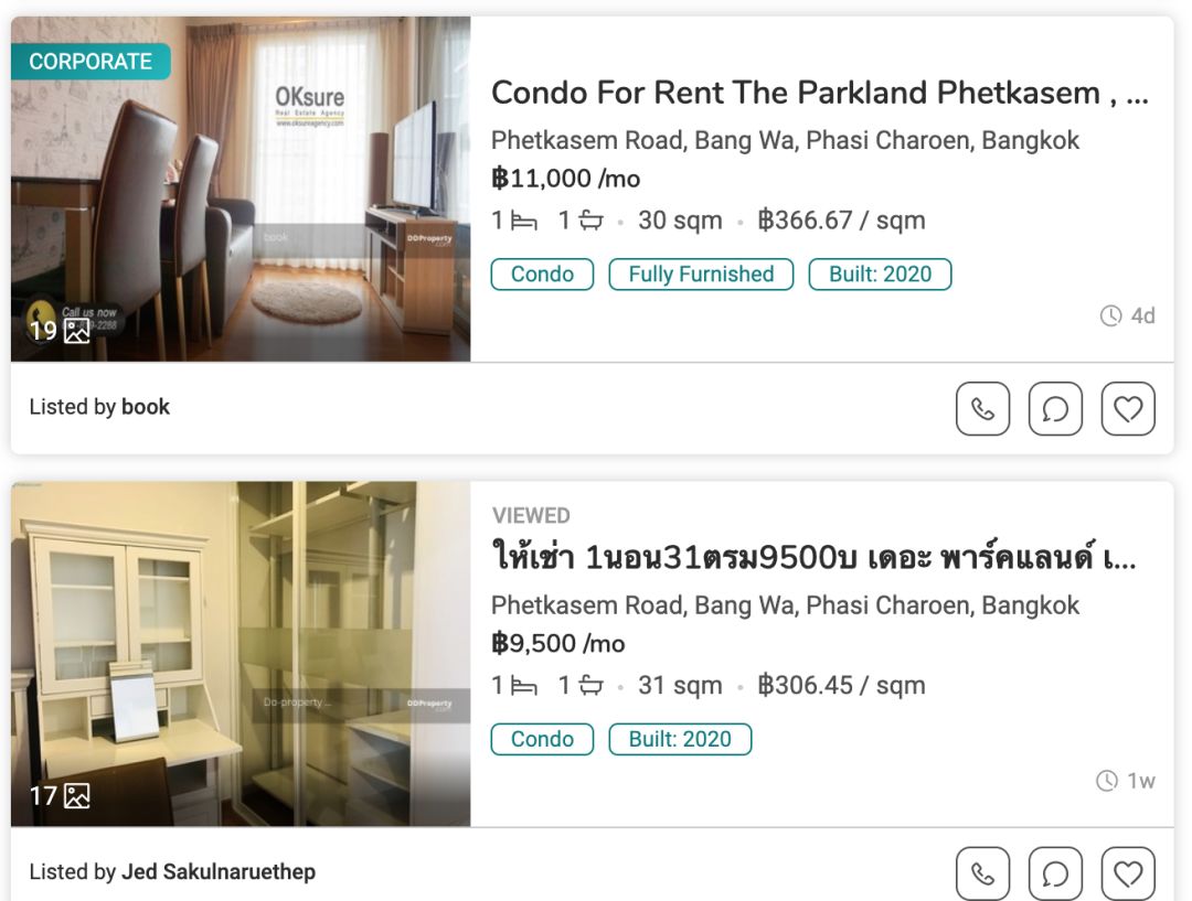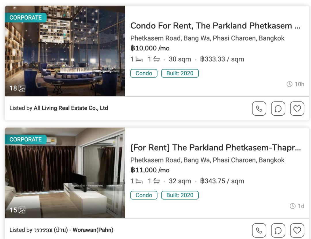 参考周边类似项目The Parkland Phetkasem 56,其租金平米价约为 330 泰铢/月: