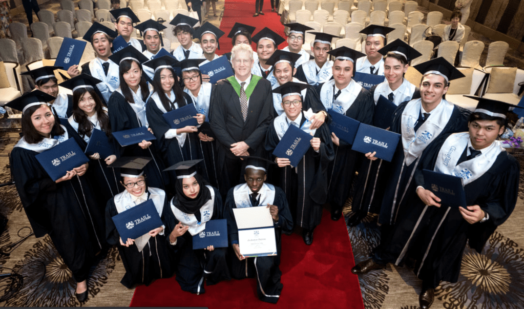 Traill学校由Anthony Traill先生和夫人成立于1966年。他们把它命名为“预科学校”。这是泰国第一所英国中学。学校大多数学生都是准备进入美国和英国的学校和大学。而后,学校也设立了幼儿园和小学。
