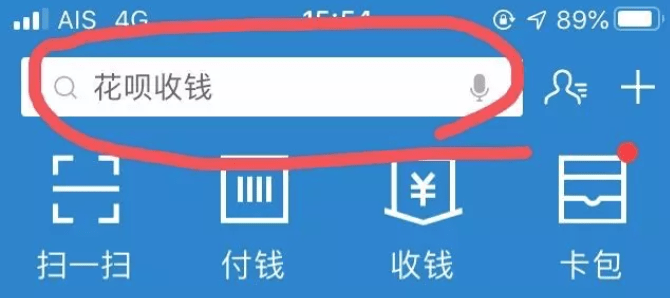 第一步,打开手机支付宝,点击上方红圈圈处搜索栏: