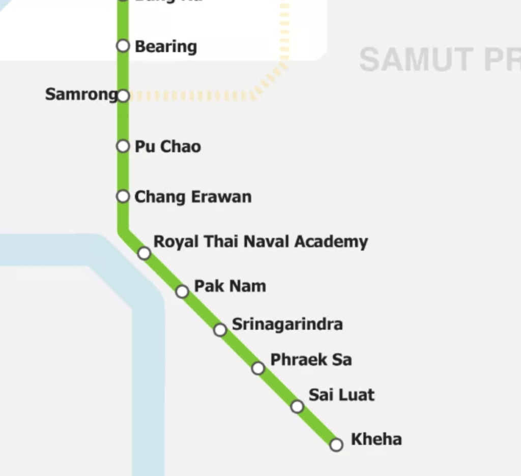 BTS Sukhumvit 线(深绿色):北 Khasetsart 站-南 Kheha 站