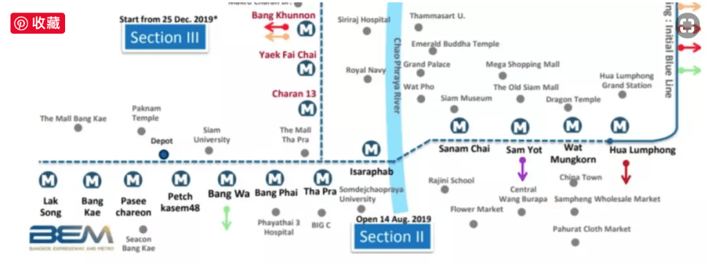 从Sirindhorn站到 Tha Phra 站的剩余 4 个站将会在 2020 年 3月 30 日起试运营,届时MRT 蓝色线的整个闭环将全部完成。河西边的小伙伴们终于可以乘坐电车到市中心啦~