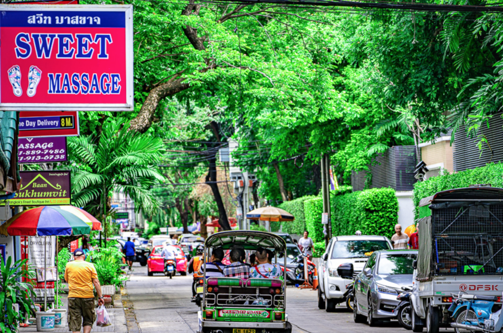 听到素坤逸 18 巷,应该很少有人一下子反应过来是在哪里。其实素坤逸路上,大部分的景点和设施都集中在了奇数侧,偶数侧相对比较少。但这里仍然聚集了很多来自欧美国家的游客。