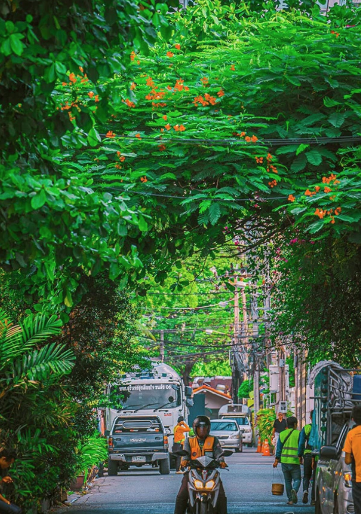 所以我选择了在冬至这一天,来到了曼谷的素坤逸主路上。顶着烈日,拿起相机,将镜头对准了那些永远看不腻的绿色。如果你刚好游腻了那些人山人海的景点,不妨到这些地方走走,体验下冬日里最美的绿色。